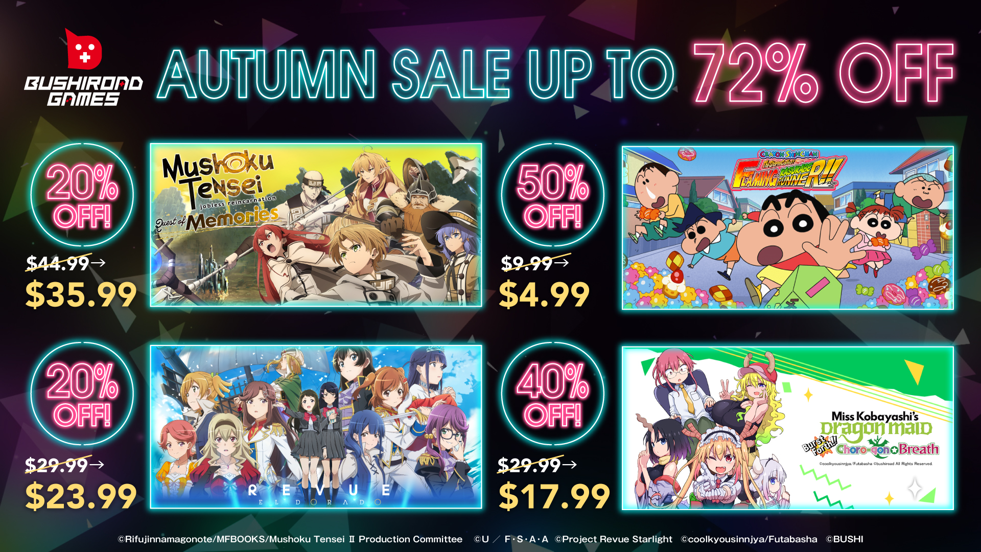 "BUSHIROAD GAMES TGS Sale 2025" will be held on the Steam Store, Nintendo eShop, and PlayStation Store, featuring digital versions of our console titles.